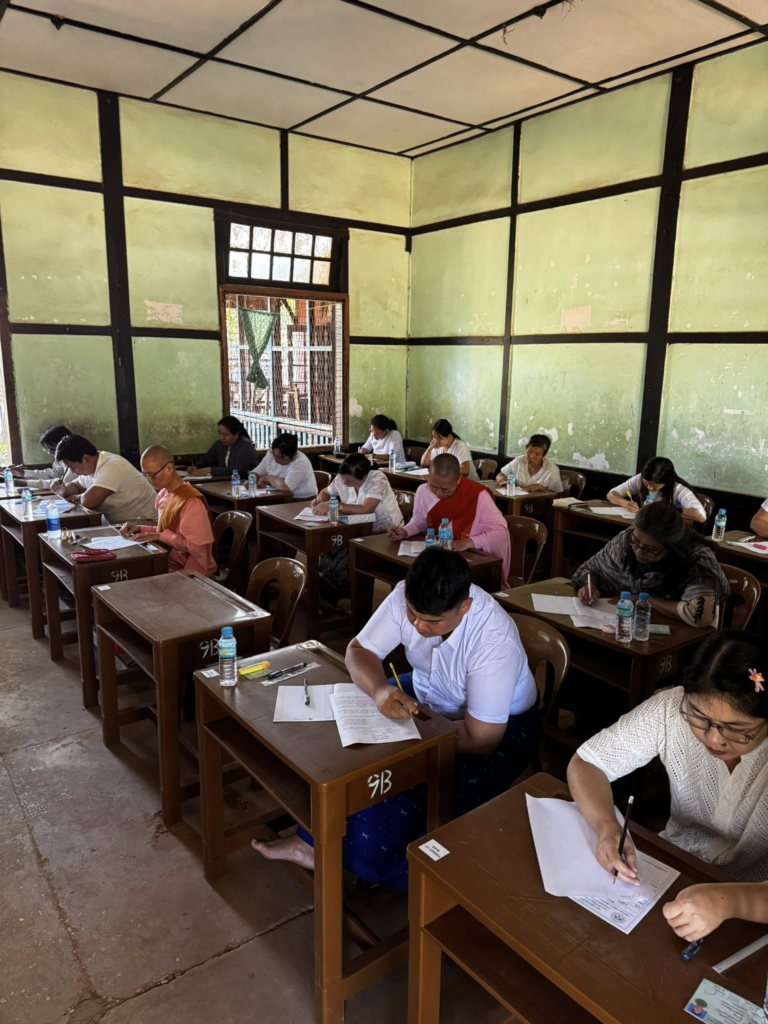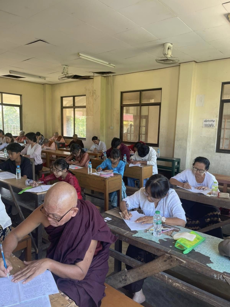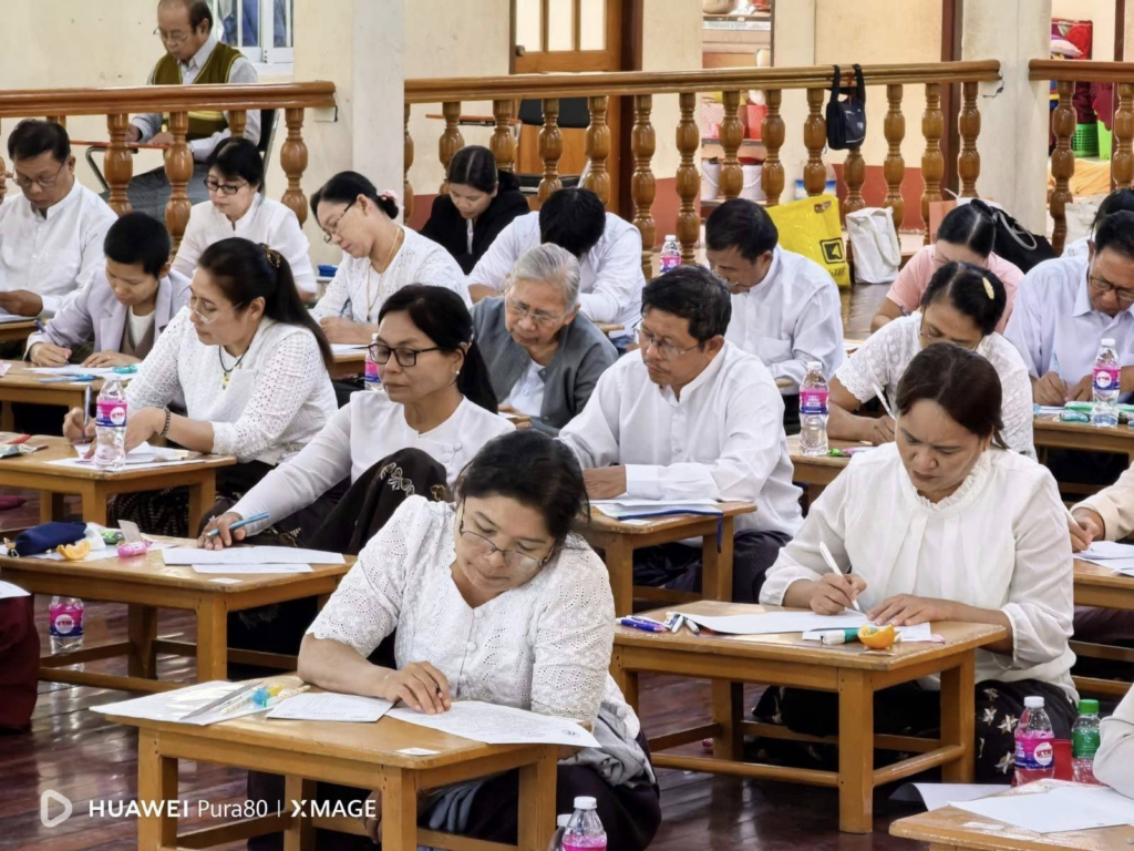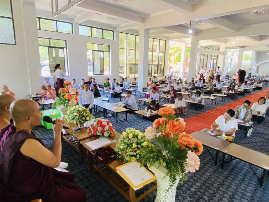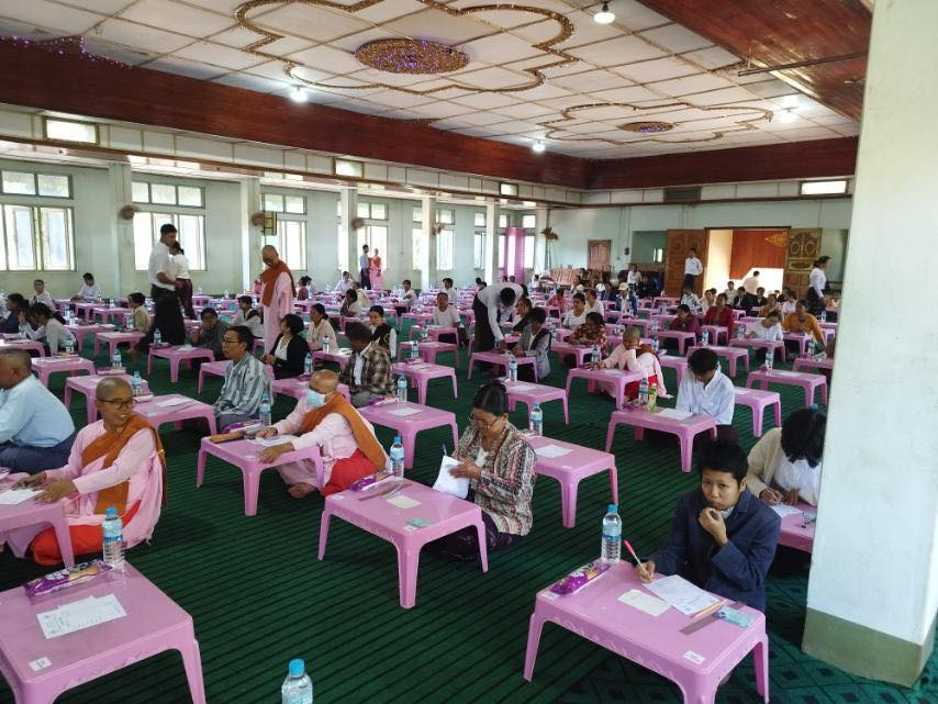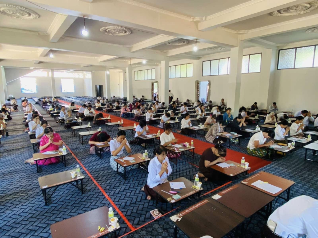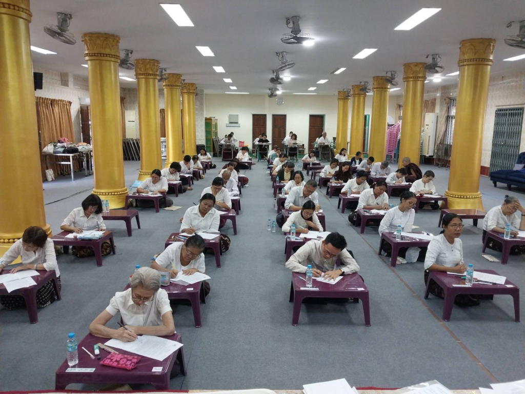 ပညာဘူမိတက္ကသိုလ် သုတဓမ္မစာမေးပွဲများ ပထမနေ့ အဖြစ် စာဖြေဌာန (၅၀) ဖြင့် ကျင်းပပြုလုပ်နေသည့် မှတ်တမ်းဓာတ်ပုံများကိုဖေါ်ပြအပ်ပါသည်။