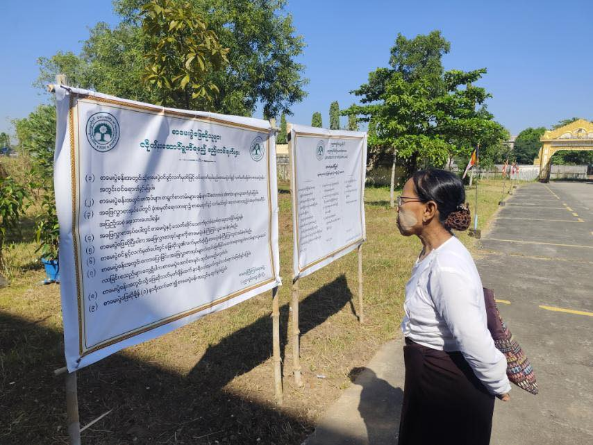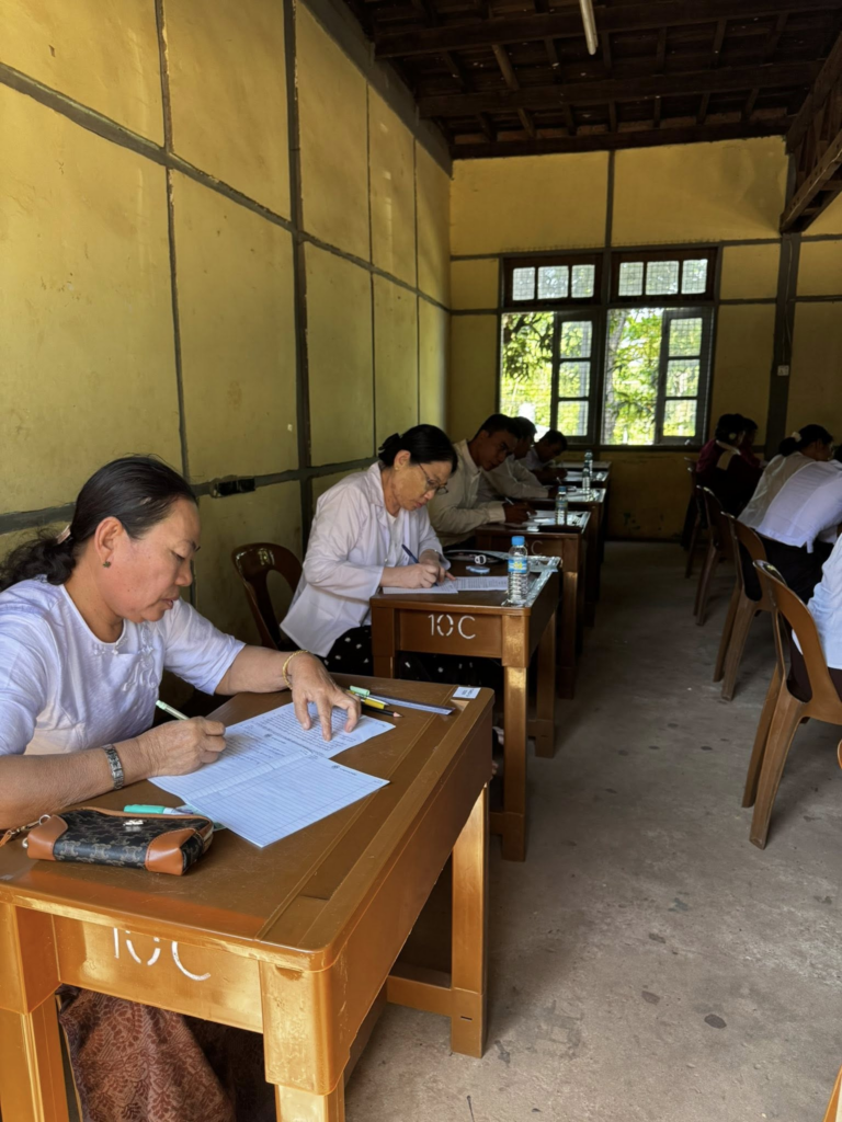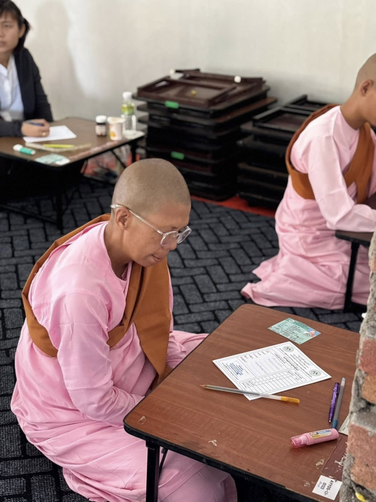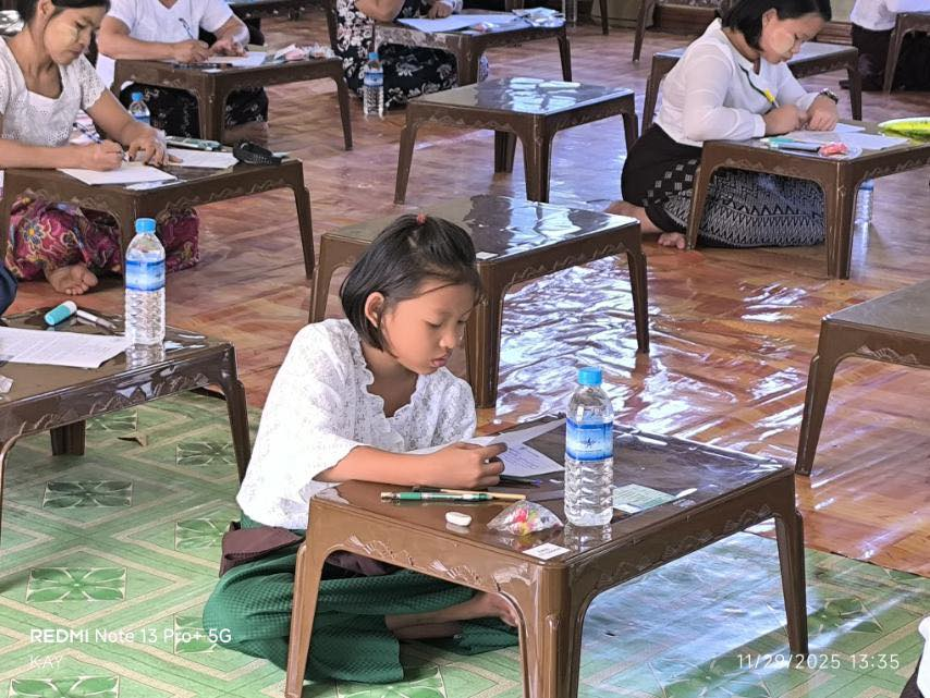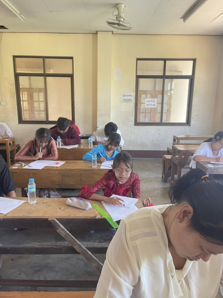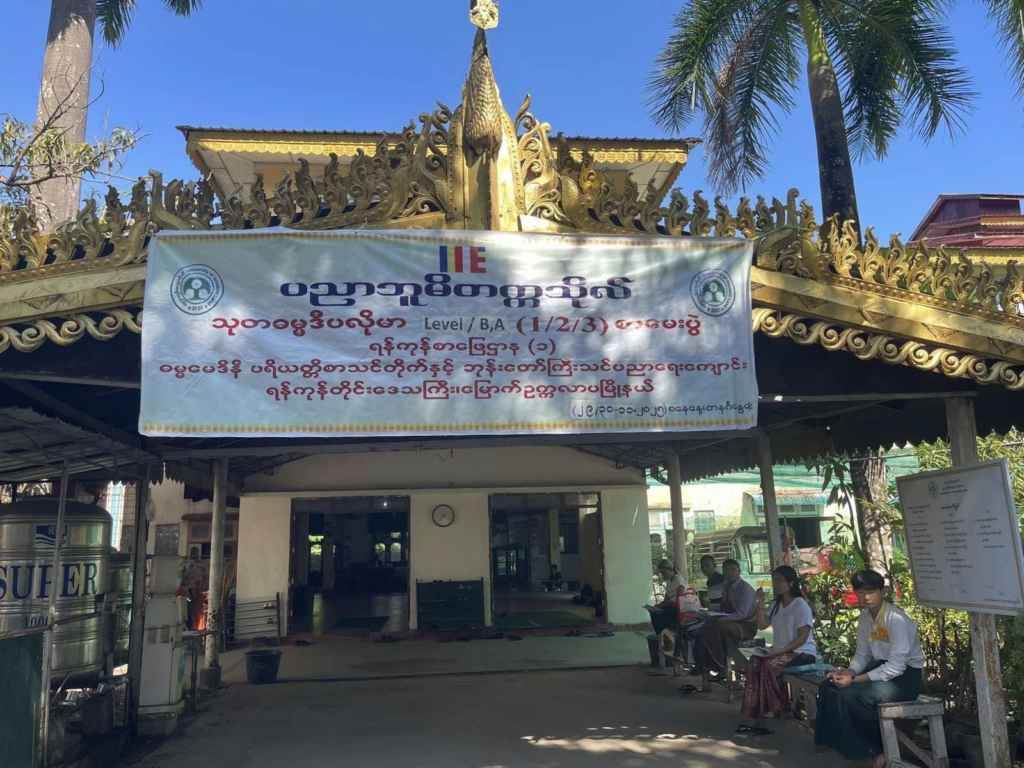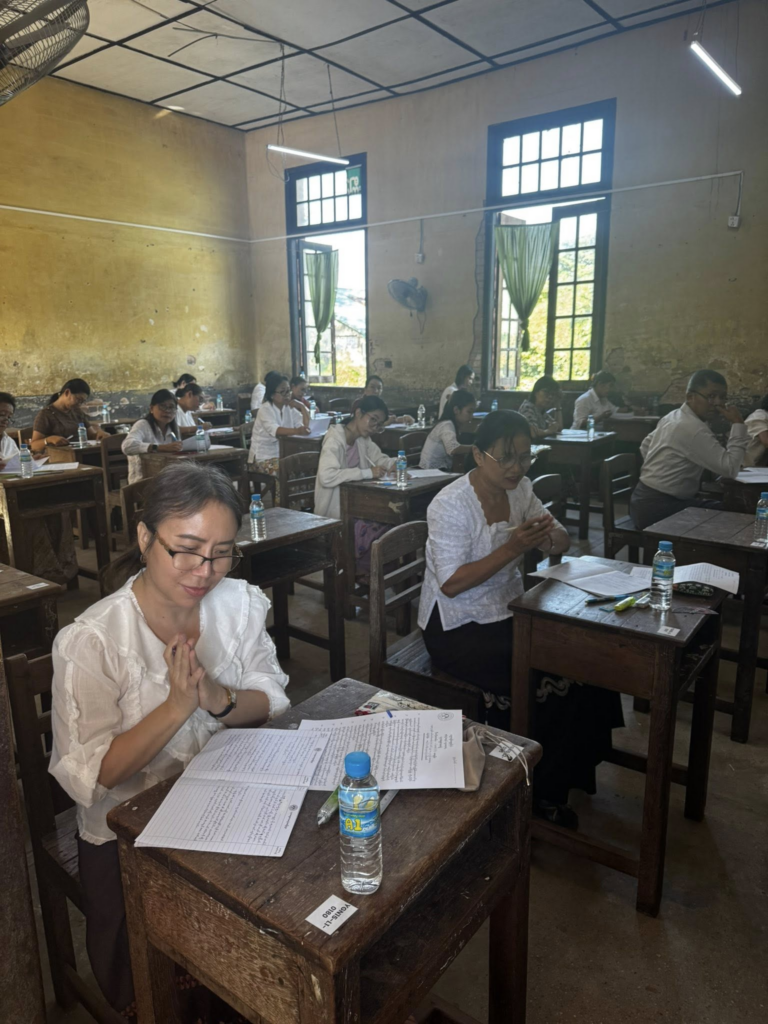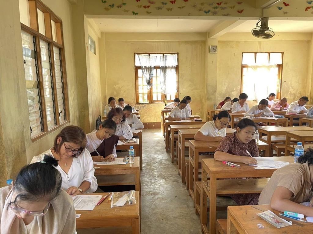ပညာဘူမိတက္ကသိုလ် သုတဓမ္မစာမေးပွဲများ ပထမနေ့ အဖြစ် စာဖြေဌာန (၅၀) ဖြင့် ကျင်းပပြုလုပ်နေသည့် မှတ်တမ်းဓာတ်ပုံများကိုဖေါ်ပြအပ်ပါသည်။