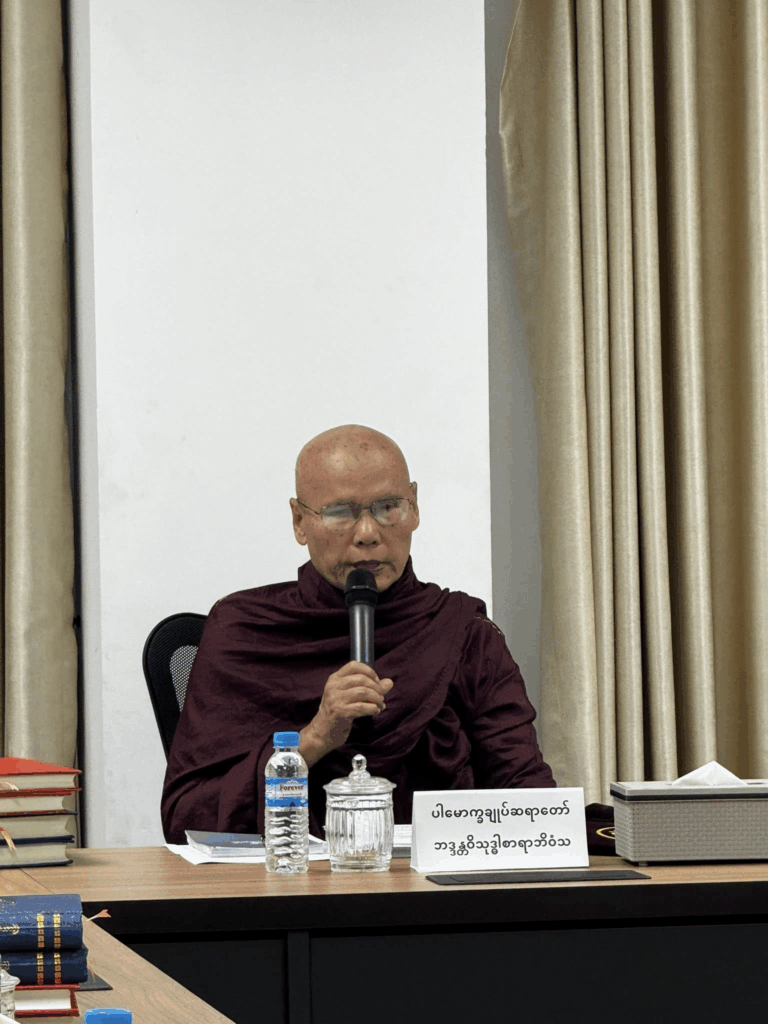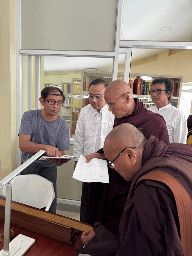 တက္ကသိုလ်သဘာပတိ(အဓိပတိ) ဆရာတော် ကြီးမိန့်ကြားသည့် သုတဓမ္မ လေ့လာသူများ ကို တက္ကသိုလ်ပိဋကတ် စာကြည့်တိုက် အတွင်းရှိ ရှေးဟောင်း ဗုဒ္ဓ ကျမ်းစာ၊ ပေစာ၊ ပုရပိုက် မှတ်တမ်းများ၊ ကျမ်းစာ ဗုဒ္ဓစာပေများကို လေ့လာ ၍ ပြုစုမည့် စာတမ်းများ နှင့် ဆက်စပ်လေ့လာ နိုင်ရေး အတွက် မိန့်ကြားထားသည်များကို ညီညွတ် စွာ စုဝေး ဆုံးဖြတ် ဆောင်ရွက်တော်မူကြခဲ့သည့် မှတ်တမ်းဓာတ်ပုံများ။